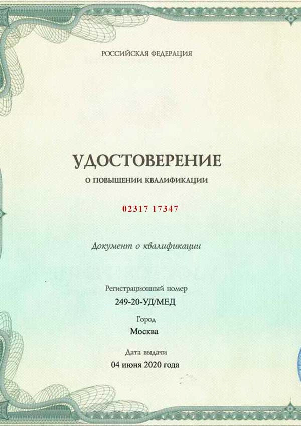 • 2020 г. — ООО «Московский многопрофильный центр профессиональной переподготовки и повышения квалификации» (программа «Скорая и неотложная помощь»).